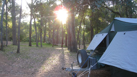 Unser nächstes Ziel war also Alexandra, von dort aus gab es die Möglichkeit einen weiteren Nationalpark zu besuchen. Um 14:30 Uhr kamen wir in Alexandra, holten uns Info über die Campingmöglichkeiten und suchten spontan eine Autogarage für den Ölwechsel an unserem Auto (ja, so schnell sind knapp 8000km gefahren und ein nächster Ölwechsel angesagt). Es klappte alles wie am Schnürchen, um 17:00 Uhr waren Öl und Ölfilter am Auto gewechselt, wir hatten eingekauft und ready für den Eildon National Park. Die Wolken hatten auch wieder aufgerissen und wir freuten uns auf den Lakeside Camping im Nationalpark. Der Campingplatz war leer… Wir suchten uns einen Platz ohne Bäume, die Eukalyptus-Bäume sind nämlich etwas gefählich. Es kann vorkommen, dass sie ganz unerwartet ihre Äste abwerfen. Dann möchten wir mit dem Zelt oder dem Auto nicht so gerne darunter stehen…