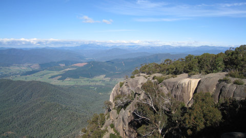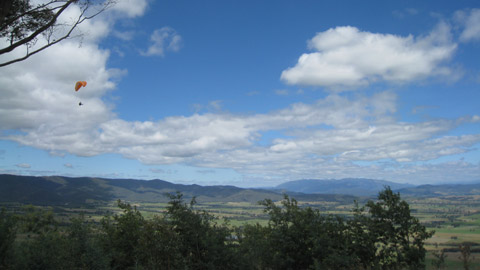 Bilder: Beim Startplatz “Pines” in der Nähe von Beechworth, keine fliegbaren Bedingungen für uns… Aussicht vom “Chalet” Richtung Bright im Mt. Buffalo National Park.