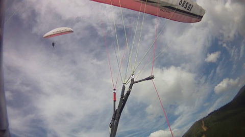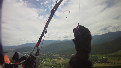Bilder: Gemeinsames Thermikdrehen im sehr feinen Steigen. Schon bald mussten wir beide in Bright landen.