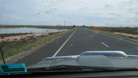 Bilder: Petra = Driver. Endlos lange und fast gerade Strassen, auf der Seite war der Boden immer noch vollgesogen mit Wasser.