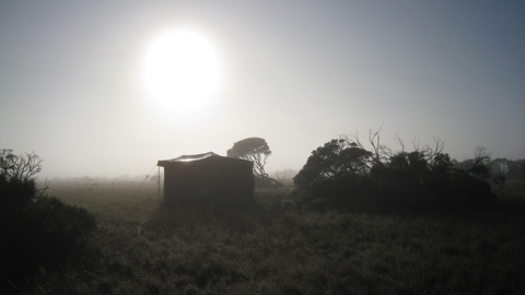 Bilder: Morgenstimmung an unserem Bush Camping Platz im Nullarbor National Park. Die Klippe fällt hier im Nullarbor NP ca. 90 m senkrecht zum Meer ab… und sie bröckelt überall, nicht alle Lookouts waren noch offen. In Westaustralien angekommen – wir zwei beim alten Pier am Strand von Eucla (Mein Faserpelz ist Schutz vor der Sonne und vor den lästigen Bremsen).