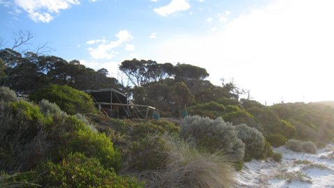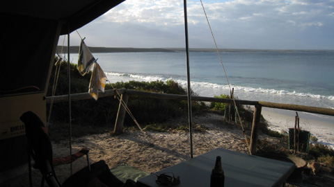 Dann fuhren wir wieder ans Meer zum Cape Riche und richteten uns auf dem einfachen Campingplatz für die Nacht ein. Ein Platz gleich über dem Strand mit Meerblick! Wenn nur die angesagte Schlechtwetterfront das Vergnügen nicht zu stark trübt… Ein Bad im kühlen Meer durfte nicht fehlen und dann wurde es schon bald wieder dunkel…