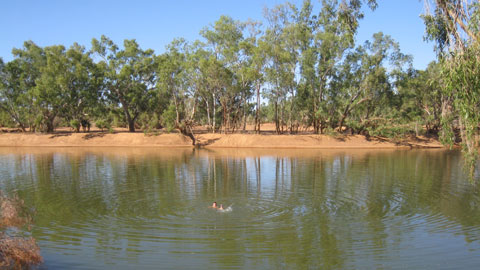 Weil wir nirgens unser Auto auftanken konnten mussten wir wieder zurück nach Carnarvon. Wieder in Gascoyne Junction nahmen wir aber zuerst ein ausgiebiges Bad im Gascoyne River. Das war toll, nach zwei Tagen mit “Wassermangel” zum Waschen.