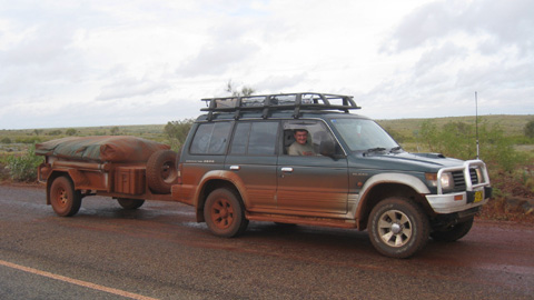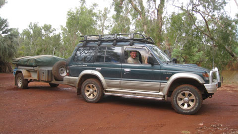 Bilder: Unser Gespann vor der Abfahrt am Crossing Pool im Millstream National Park… und 40 Minuten und 60 km später wieder auf der geteerten Strasse.