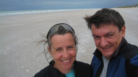 Das Wetter war zwar sehr durchzogen und extrem windig, aber wir freuten uns über den etwas günstigeren Campingplatz (und vor allem über die Dusche). Und der Strand war wirklich einen Abstecher wert ( – Schwimmen nicht empfehlenstwert, sehr rauh und die Heimat von Haien und Stachelrochen). Wir schlugen unser Lager beim Strandcamping auf und zurrten alles schön fest, der Wind war dann später in der Nacht so um 80 km/h