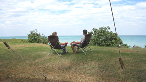Bilder: Die berühmte “Cable Beach” in Broome (einer der schönsten Strände der Welt (???)). Wir genossen unseren Zeltplatz mit der fantastischen Aussicht zum Apero (leider ist es um 18:00 schon stockfinster und für das Vollmondspektakel dauert es noch 7 Tage).