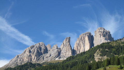 Nachtrag 16.09.2010: Das sind natürlich nicht die drei Zinnen! Sondern Langkofel etc.