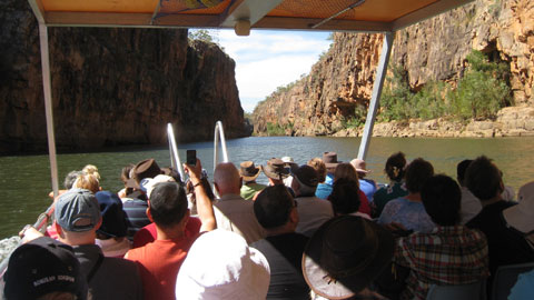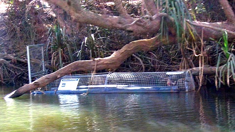 Bilder: Im Katherine Gorge, Nitmiluk National Park, NT. Das Freshi-Krokodil, wir waren zum richtigen Zeitpunkt am richtigen Ort. Eine “Salties” Krokodil Falle.