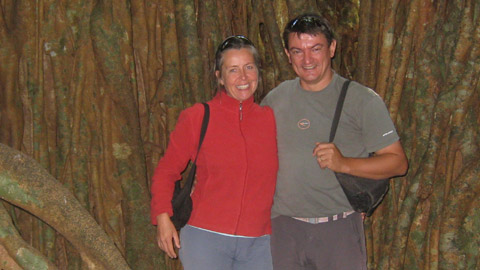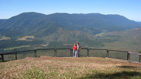 Unsere Tour führte uns zuerst zum Eacham Lake, einem Kratersee. Dort umrundeten wir den fast kreisrunden See zu Fuss und fuhren dann weiter an einem anderem Krater See vrobei auf die Gillies Range und dann zum Gillies Lookout, ein schöner Startplatz… Da wir aber noch anderes anschauen wollten, verzichteten wir heute auf das Fliegen. Der Cathedral Fig Tree gleich in der Nähe ist ein riesiger Gummibaum mit hängenden Wurzeln. So gross, dass man in die Mitte stehen kann, das Blätterdach beginnt 30 m weiter oben… Wir folgten dann der Srasse weiter um den Lake Tinaroo, einem zusätzlich gestauten See. Nicht soo spannend – und die nicht geteerte Strasse hatte stellenweise riesige Löcher, so dass man beim Fahren in den Sonnen- und Schattenflecken auf der Strasse höllisch aufpassen musste.
