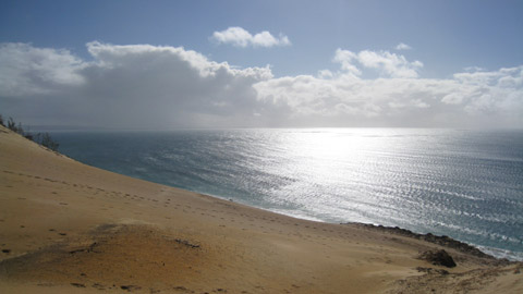 Der Regen nahm auch diese Nacht kein Ende, immer wieder prasselte es herunter. Tagsüber schonte es dann meistens und wir machten einen Ausflug zum “Carlos Sandhole” und an den “Inskip Point”. Das Carlos Sandhole, eine grosse Wanderdüne – oder besser Wanderloch, wäre denn der Startplatz, wenn es fliegbar wäre. Beim Inskip Point schauten wir all den Autos zu, die mit der Fähre zur Fraser Island übsetzten oder von der Insel kamen.