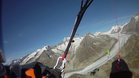Thomas hatte es heute wieder geschafft: Die feine Thermik in der Mittagspause der Helipiloten ausdrehen und den Aletschgletscher von oben filmen!