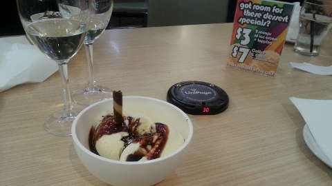 Bilder: Im Hellenic Club, leider sieht man das Gewusel auf dem Bild nicht wirklich. Das schwarze Ding ist ein ‘Remote Order Ready Button’ – das Ding meldet sich sobald der Kaffee an der Bar gepresst wurde. Und die Maus auf dem Schachbrett (Das ist nur ein Haustier).