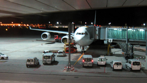Dann gings los mit einchecken, Pass- und Sicherheitskontrolle und dem weiten Weg ins Terminal 4S. Warten, Tagebuch schreiben, etwas essen…