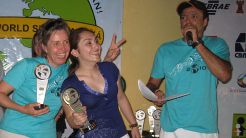 Bilder: Petra auf dem Siegertreppchen mit der Chilenin Denisse. Das Auto von Durval (links ;-)) brauchte vor der Abfahrt noch eine Reifenreparatur (4 cm Nagel im Pneu).
