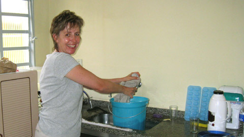Endlich ist auch das Foto fertig: Da es heute kein Flugwetter war, konnten wir wieder einmal waschen.