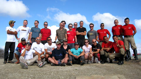 Zum speziellen Datum gab es heute das obligatorische Gruppenfoto. Mit Bombeiros (Feuerwehr), Starthelfer und Paulo. Andy steht hinter seiner Kamera…