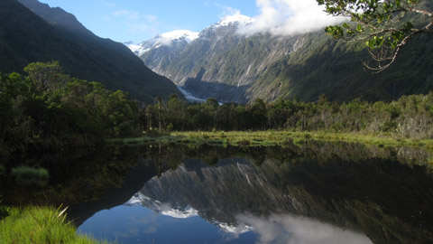 Bild: Spiegelung beim Peters Pool, Blick zum Franz Josef Glacier.