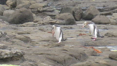Besonders war es in der Curio Bay, dort gibt es Versteinerungen im Strandgestein zu sehen. Aber dann tauchten auf einmal Pinguine auf.