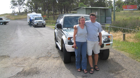 Bild: Die stolzen Autobesitzer auf dem Weg nach Manilla an einem Rastplatz bei Singleton/Musswellbrook.