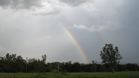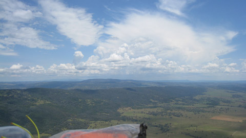 Der Flug um die Mittagszeit war gerade richtig. Es ging überall gut hoch. Wie man auf dem Flugbild von mir sieht, ist eine erste Gewitterfront schon im Anzug. Bald wurde gelandet, einige Piloten warteten sogar bis es richtig schwarz und dunkel war. Besser früher hinunter und am Boden… als oben zu sein und nicht runter zu kommen. Die Gewitter kamen dann später und hinterliessen schöne Regenbogen!