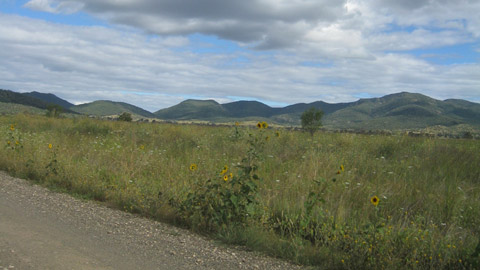 Bild: Auf der Fahrt zurück zum Boggabri Gap: Viele Sonnenblumen am Strassenrand. Die Wolken brauten sich auch schon wieder zu Gewittern zusammen…
