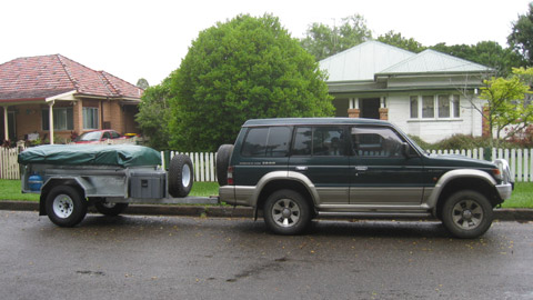Bild: Das erste Foto unseres Gespanns in Wauchope. – Es fehlen noch ein paar Dinge, aber wir freuen uns richtig auf Campen. PS: Zufälligerweise regnete es beim Fototermin gerade nicht….