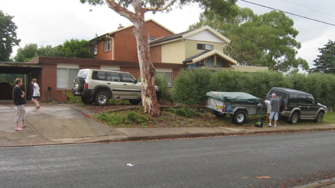 Heute war mein Fahrtag, zum Glück regenete es bis kurz vor Canberra nicht. Dann öffnete aber Petrus alle Schleusen und ich konnte beim Fahren kaum etwas sehen. Und ich merkte, dass das Gefährt mit Anhänger und auf nasser Strasse ganz schön gefährlich werden kann. Beinahe sauste ich einem anderen Auto ins Hinterteil – unser Auto mit Anhänger rutschte und rutschte und rutschte auf der nassen Strasse. Der Abstand reichte aber gerade noch, Glück gehabt (gut, dass wir eine Versicherung abgeschlossen haben, hoffentlich brauchen wir sie nicht). Kurz vor der Ankunft bei Matt hörte der Regen auch schon wieder auf.