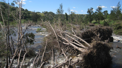 Bilder: Terry und Thomas am Nord Startplatz des Pig. Auch der Uriarra führte in den letzten Monaten ein paar Mal viel Wasser, zahlreiche weggeschwemmte Bäume zeugen vom Hochwasser in diesem Fluss, der normalerweise harmlos und ein beliebter Badeplatz für Familien ist.