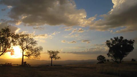 Wir nahmen ein erfrischendes Bad im Namoi River in Manilla und kochten unser Abendessen zeitig. Dann fuhren wir zum Startplatz für den Sonnenuntergang. – Währen dem Nachmittag bildeten sich gegen Osten riesige Gewitterzellen und so war das Spektakel mit Blitzen, Sonnenuntergang und Känguruhs am Abend eine grossartige Szenerie für Fotos. Während unserer Fotosession mussten wir auch einmal kurzzeitig ins Auto flüchten weil wir dachten, eine der Gewitterwolken kommt auf uns zu. Dem war aber nicht so und wir konnten dann das Spektakel bis zum Eindunkeln geniessen.