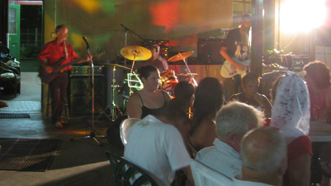 Bild: Party im Royal Hotel in Manilla, Mick (links mit rotem Hemd) am Bass.