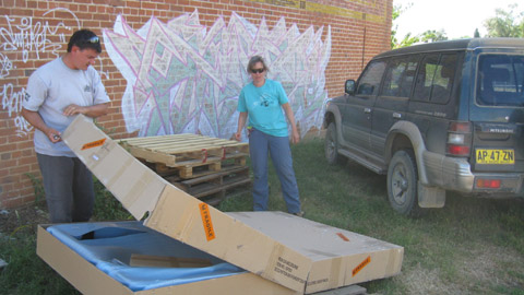 Auch Thomas landete auf dem Weg nach Manilla, und so konnten wir heute endlich unseren auf Ebay gekauften, und nach langem Warten und intervenieren endlich gelieferten Dachträger montieren. Für die vielen Schrauben brauchten wir mit Hilfe von Wolfgang sicher zwei Stunden. Jetzt ist also unser Auto schon fast reisetauglich (die Kanus fehlen noch…).