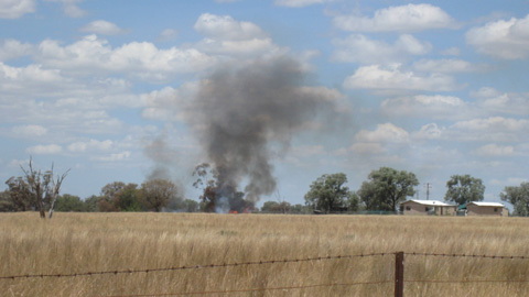 Trotzdem konnten wir heute fliegen, ich musste allerdings bereits nach 15 km beim Lake Keepit landen. Gleich auf der anderen Seite der Strasse hatte es beim meinem Landeplatz vor drei Tagen gebrannt, eine ziemlich grosse Fläche war brandschwarz und verkohlt.